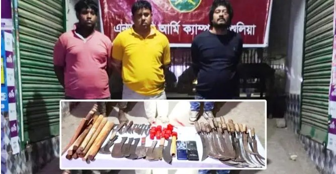 বিপুলসংখ্যক দেশীয় অস্ত্রসহ সাবেক যুবদল নেতাসহ আটক ৩